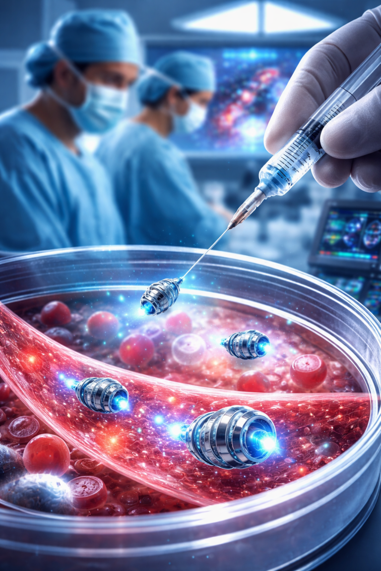This introduces “contactless surgery,” allowing complex procedures to be performed via simple injections rather than invasive incisions. Clinical trials expected by 2027 could confirm that micro-robots deliver drugs directly to individual cells, potentially replacing traditional chemotherapy and other systemic treatments.