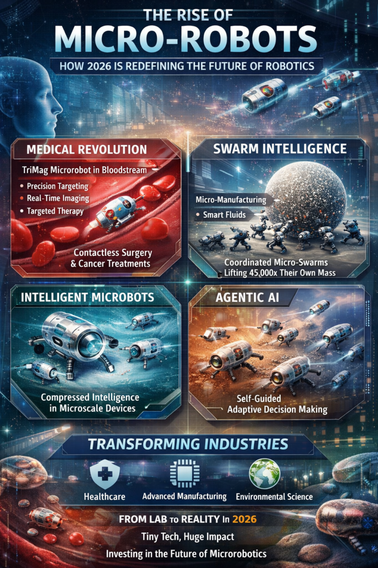 The year 2026 marks a decisive turning point in robotics. While humanoid machines continue to dominate headlines, a quieter yet far more transformative revolution is unfolding at a microscopic scale. Micro-robots—machines often smaller than a human hair—are evolving rapidly from laboratory experiments into practical, high-impact tools. As a result, they are poised to redefine industries such as medicine, advanced manufacturing, and environmental science, bringing precision and automation to scales previously unimaginable.